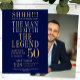 His life has been a great adventure! This fabulous navy blue men's 50th birthday surprise party invitation that says "The Man The Myth The Legend" in a classic font in silver and gold would be perfect for asking people to join you as you celebrate the man in your life's 50th birthday. This invitation is trendy, stylish, modern and contemporary. The photo on the back makes it that much more special. To see your unique invitations select "Personalize this template" and type in your information and upload a favorite photo. It's super easy!