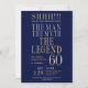 His life has been a great adventure! This fabulous navy blue men's 60th birthday surprise party invitation that says "The Man The Myth The Legend" in a classic font in silver and gold would be perfect for asking people to join you as you celebrate the man in your life's 60th birthday. This invitation is trendy, stylish, modern and contemporary. The photo on the back makes it just that much more special. To see your unique invitations select "Personalize this template" and type in your information and upload a favorite photo. It's super easy!