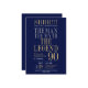 His life has been a great adventure! This fabulous navy blue men's 90th birthday surprise party invitation that says "The Man The Myth The Legend" in a classic font in silver and gold would be perfect for asking people to join you as you celebrate the man in your life's 90th birthday. This invitation is trendy, stylish, modern and contemporary. To see your unique invitations select "Personalize this template" and type in your information. It's super easy!