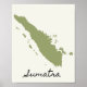 This minimalist design features a silhouette of the island of Sumatra in muted green tones against a light background, accompanied by the island's name in a stylish handwritten font. It captures the essence of Sumatra's geography in a clean and modern aesthetic. Perfect for decor or educational purposes!