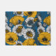 Seamless vector pattern made with hand drawn daisies, poppies and ladybugs. Yellow and white colour version.
