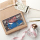 This design features a painting by the Irish Victorian painter Sir Frederic William Burton (1816–1900), who became the third director of the National Gallery in London, England. The painting is inspired by an old Danish ballad, which tells the tragic story of Hellelil, a young noblewoman, and Hildebrand, her bodyguard and secret lover. Burton masterfully depicts the couple in a secret, stolen embrace on a narrow, winding stone staircase. The scene is infused with a sense of urgency and inevitability, as if the lovers know that this moment may be their last. The composition is vertical, with the lovers positioned on a tight spiral of the turret stairs, emphasising the closeness and the confined space that heightens the emotional intensity of the scene. Hellelil is shown ascending the turret stairs, her head turned slightly towards Hildebrand, who stands above her. She is dressed in a flowing, richly adorned gown of deep blue with golden embroidery, symbolising her noble status and the formality that constrains her life. Her golden hair cascades in a long pigtail down her back, adding to her ethereal presence. Hellelil's face, illuminated by soft light, is filled with sorrow and a sense of inevitable loss. Hildebrand tenderly clasps her hand between his, as an expression of the deep connection and the desperation of their forbidden love. Hildebrand, who stands below her on the stairs, is clad in a suit of armour, signifying his role as her protector. His face, partially obscured, conveys the melancholy of a man caught between duty and love. The armour also foreshadows the violence and tragedy that will ultimately tear the lovers apart. Despite the constraints of their situation, the lovers' touch is gentle and full of unspoken emotion. The setting of the turret stairs, with its cold, grey stone, contrasts sharply with the warmth of their attire and their shared moment, emphasising the isolation and the insurmountable barriers they face. The narrowness of the stairwell intensifies the feeling of confinement, as though they are trapped by fate and the rigid social structures of their time. Burton’s delicate use of light highlights the emotional depth of the scene, particularly in the way it gently illuminates Hellelil’s face and their clasped hands. The interplay of light and shadow enhances the mood of the painting, underscoring the bittersweet nature of their farewell. "The Meeting on the Turret Stairs" is a masterful portrayal of doomed love, infused with emotional intensity and narrative richness. Burton's attention to detail, his skilful composition, and his ability to convey the profound emotions of his characters make this painting a timeless depiction of love, loss and the inexorable pull of fate. The original artwork was painted by Frederic William Burton in 1864.