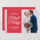 Send your warm holiday wishes with this customisable Christmas card. It features a modern typography script with a red and white diagonal stripes pattern. Personalise this modern holiday card by adding your details. This custom photo Christmas card is available in other cardstocks and colours. Matching items are available.