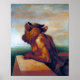 In Greek mythology, the Minotaur was part man and part bull. He dwelt at the centre of a Cretian labyrinth built to imprison him. As the myth goes, children were shipped from Athens to the Island of Crete to be scarified as food for the Minotaur in exchange for his leaving the Island of Crete in peace. In this amazing painting by George Frederick Watts, the Minotaur is shown looking out over the sea in anticipation of the ship. In his hoof-like hand is a small crushed bird. This artwork is in the collection of U.K.'s Tate Gallery." In this way the Minotaur symbolises the greed and lust of society.