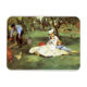 The Monet family in their garden. Edouard Manet . Summer landscape. A woman in a beautiful dress and hat is sitting in the garden under a tree on the grass. A boy is sitting on the grass nearby. Reproduction of famous works of art images in the public domain.