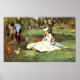 The Monet family in their garden. Edouard Manet . Summer landscape. A woman in a beautiful dress and hat is sitting in the garden under a tree on the grass. A boy is sitting on the grass nearby. Reproduction of famous works of art images in the public domain.