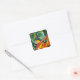 Colourful painting by German artist Franz Marc of a monkey in the jungle sitting on a fallen tree, looking back over his shoulder. Oil on canvas with bright primary colours and stark simplicity. "The Monkey" 1912.
