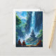 This artwork captures a moment of deep introspection, where the monks find Stillness in the Water's Roar. The vibrant blues of the sky and the crystalline cascade contrast beautifully with the earthy tones of the ancient pagoda and the monks' saffron robes. It's a visual symphony of nature and spirituality.