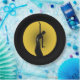 Set of eight 9” black paper plates with an image of an Art Deco female silhouetted in the bright yellow light of a full moon.