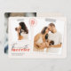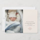 A modern card as a birth announcement with a simple minimal message "The more the merrier" includes templates for 2 photos on the front and 1 on the back Personalise with your names, short message on the front, and on the back baby stats.