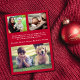 Cute holiday season birth announcement featuring your newborn's photo, "the more the merrier" in a stylish red script and their name and birth stats. On the reverse side, add 3 additional photos and a customised greeting.