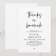 Mark the beginning of your forever with elegance using our contemporary black and white theme post wedding elopement brunch celebration invitation card, "thanks a brunch", for crews, bridesmaids and groomsmen. Perfect for couples extending their joyous occasion, this invitation exudes sophistication with a hint of playfulness, setting the stage for a memorable event. Adorned with a timeless modern script design theme, it adds a touch of refined charm to your festivities. Crafted by TeeshaDerrick, this invitation promises to beautifully capture your love story.