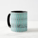 Stylish coffee mug with a teal print that can be switched to any colour of your choice. The morning routine text can be personalised to any message or the text is also removable.