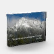 Acrylic photo block that features a photo image of a scenic, winter landscape of snowy mountains and forests along with an inspiring quote by naturalist John Muir that reads, "The mountains are calling and I must go."