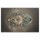 The mysterious steampunk movement. A fascinating steampunk watch that captivates with its unique combination of mechanical aesthetics and fantastical elements. The central dial is surrounded by an artfully designed crown of golden tentacles that elegantly curl outward, lending the watch design a vibrant, almost organic touch. These tentacles stand out clearly from the frame, which is a deep blue-green with gold accents, creating a sophisticated contrast to the warm gold of the tentacles.