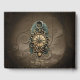 The mysterious steampunk movement. A fascinating steampunk watch that captivates with its unique combination of mechanical aesthetics and fantastical elements. The central dial is surrounded by an artfully designed crown of golden tentacles that elegantly curl outward, lending the watch design a vibrant, almost organic touch. These tentacles stand out clearly from the frame, which is a deep blue-green with gold accents, creating a sophisticated contrast to the warm gold of the tentacles.