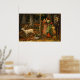 The Mystic Wood by John William Waterhouse shows a hushed autumn forest where glowing leaf litter, pale trunks, and deep shadow create a stage for quiet wonder. A white stag with branching antlers steps across the woodland floor, its brightness almost supernatural against the rust and moss. From the right, three women and a child press forward cautiously, their richly patterned garments catching pockets of light as if the forest itself is watching them. In the distance, a faint, half hidden figure deepens the sense of spell and legend, turning the scene into a moment of suspended breath where myth feels close enough to touch.