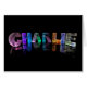 This image is a photograph of handmade letters, which change randomly, producing unique patterns and colors of light. The name Charlie is reflected in still water, with floating foil hexagons. The letters look as if they're carved from crackled ice or crystal. If you can't find a name you want, please get in touch, and I'll put it on my list. Please see NamesInLights.co.uk for larger examples of the standard of photography on these products.