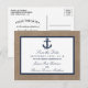 The Navy Anchor On Burlap Beach Wedding Collection Announcement Postcard