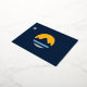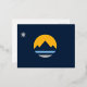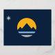 Postcard with the new flag of the city of Reno, Nevada; a dark blue flag with a yellow sun and blue mountains in the centre