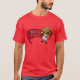 I give wanted to give this a 4 instead of a 5 because these Basic DARK T0shirts run unexpectedly SLIM or Narrow. Which is great if you do not have a potbelly, but I have a paunch. It isn't the shirt's fault that I've got a beer belly. The design and shirt itself is a quality cotton shirt. The color is more of a deep purple, but still a very pretty color. The Basic DARK T-shirts run a bit SLIMMER than the Basic Ts. The neck is a fraction narrower (or seems to be narrower) also. I'm a paunchy middle-aged woman and my neck is 12 inches (31cm) thick and the neckline fell about the same as in the photo of the man, and I had the desire to tug it a bit. So if you're a thick necked man or like loose shirts, be aware these are slimmer shirts. Once I get rid of my lockdown paunch it'll look great. The shirt washed well in cold water with no apparent bleeding. We don't have a dryer, so it hung dry. Did not shrink. Love the colors and the design. The design looks smaller on my shirt than it does on the model on-line. But still, it looks good on the shirt. The printing looks as it does on the model, just the size seems fractionally smaller.  Washed garment in cold water, hung dry and design appeared unaffected.