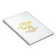 It's a bit smaller than your standard legal sized notebook, but is perfect for fitting into your bag/purse. Great quality in the spiral binding and thicker than average notebook paper. Printing turned out exactly as shown in the customization process - very happy with this purchase.