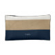 A great gift for a new bride. This little bag is perfect for getting all your makeup to the wedding or a perfect honeymoon carryall. Nautical navy blue offset the faux gold leather. Add your new last name and you wedding date to the back to make it truly one of a kind.