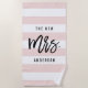Our sweet personalised bride beach towel makes a perfect honeymoon gift for a newly married friend! Design features "The New Mrs. [lastname]" in modern, trendy black typography on a blush pink and white striped background. Easily customise with the bride's new last name using the field provided. Prefer this for a bride-to-be? Simply switch "new" to "future."