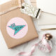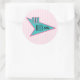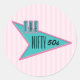 Round sticker with an image of a blue and pink 50s diner sign with the text “The Nifty 50s” on soft pink-on-pink stripes. See matching custom-cut vinyl sticker, confetti, favour bag, favour tag, gift bags, label and wrapping paper. See the entire Nifty 50s Sticker collection in the INVITES | Stickers & Labels section.