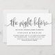 Let's celebrate the bride and groom before the wedding. Invite family and friends with this elegant rehearsal dinner invitation. It features whimsical calligraphy with classic typography. Personalise by adding names, date, address and other details. This script The Night Before invitation is perfect for any wedding season and theme.