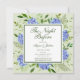 This "The Night Before" blue hydrangea rehearsal dinner invitation is romantic, whimsical and stunning! With its watercolor multi-hued blue hydrangeas and wispy natural greenery on a soft green background and modern yet traditional classic script font it is perfect for any bride. Having your qr code on the back will make rsvping to your rehearsal dinner easy and convenient for your guests. By selecting Personalise this template and typing in your information and uploading your qr code you can see your gorgeous invitations in seconds!