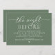 Announce your happily ever after in style with our modern forest sage green theme design (The Night Before) wedding rehearsal celebration invitation card. It is ideal for couples who have decided to celebrate the night before their big day. With its sophisticated yet playful design, this invitation is sure to set the tone for an unforgettable event. The invitation card features modern romantic script design, adding a touch of timeless elegance to your celebration. Designed by TeeshaDerrick