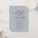 "The Night Before". Modern romantic minimalist Classy design themed, wedding rehearsal dinner invitation card in charcoal chill grey theme. Planning a wedding Rehearsal Dinner celebration with the to-be Bride and to-be Groom, before their BIG day? Invite the guests with this perfect Wedding Rehearsal Dinner Invitation Card. Easily edit it with your rehearsal dinner invitation details.