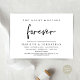 Announce your happily ever after in style with our modern rustic theme design (The Night Before Forever) wedding rehearsal celebration invitation card. It is ideal for couples who have decided to celebrate the night before their big day. With its sophisticated yet playful design, this invitation is sure to set the tone for an unforgettable event. The invitation card features a greenery design, adding a touch of timeless rustic elegance to your celebration. Designed by TeeshaDerrick