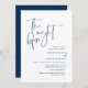 "The Night Before". Modern romantic minimalist design themed, wedding rehearsal dinner invitation card (in navy blue, portrait orientation theme). Planning a wedding Rehearsal Dinner celebration with the to-be Bride and to-be Groom, before their BIG day? Invite the guests with this perfect Wedding Rehearsal Dinner Invitation Card. Easily edit it with your rehearsal dinner invitation details.