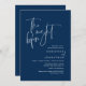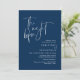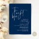 "The Night Before". Modern romantic minimalist design themed, wedding rehearsal dinner invitation card (in navy blue, portrait orientation theme). Planning a wedding Rehearsal Dinner celebration with the to-be Bride and to-be Groom, before their BIG day? Invite the guests with this perfect Wedding Rehearsal Dinner Invitation Card. Easily edit it with your rehearsal dinner invitation details.