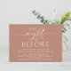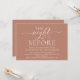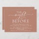Modern Romantic Calligraphy, White Script, Terracotta Brown Earthy Tones Background, Wedding Rehearsal Dinner invitation card (with card title: the night before). It is perfect for your wedding rehearsal dinner celebration party, before your best day. Add your details in matching black font / lettering.