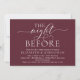 Modern Romantic Calligraphy, White Script, pastel burgundy Background, Wedding Rehearsal Dinner invitation card (with card title: the night before). It is perfect for your wedding rehearsal dinner celebration party, before your best day. Add your details in matching black font / lettering.