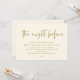 Announce your happily ever after in style with our modern yellow gold theme design (The Night Before) wedding rehearsal celebration invitation card. It is ideal for couples who have decided to celebrate the night before their big day. With its sophisticated yet playful design, this invitation is sure to set the tone for an unforgettable event. The invitation card features modern romantic script design, adding a touch of timeless elegance to your celebration. Designed by TeeshaDerrick