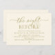 Announce your happily ever after in style with our modern yellow gold theme design (The Night Before) wedding rehearsal celebration invitation card. It is ideal for couples who have decided to celebrate the night before their big day. With its sophisticated yet playful design, this invitation is sure to set the tone for an unforgettable event. The invitation card features modern romantic script design, adding a touch of timeless elegance to your celebration. Designed by TeeshaDerrick