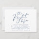 Announce your happily ever after in style with our modern classy navy blue theme design (The Night Before) wedding rehearsal celebration invitation card. It is ideal for couples who have decided to celebrate the night before their big day. With its sophisticated yet playful design, this invitation is sure to set the tone for an unforgettable event. The invitation card features modern romantic script design, adding a touch of timeless elegance to your celebration. Designed by TeeshaDerrick