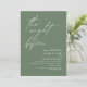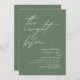 Announce your happily ever after moment in style with our modern forest sage green wedding theme design (The Night Before) wedding rehearsal celebration invitation card. It is ideal for couples who have decided to celebrate the night before their best day. With its sophisticated yet playful design, this invitation is sure to set the tone for an unforgettable event. The invitation card features modern romantic script design, adding a touch of timeless elegance to your celebration. Designed by TeeshaDerrick