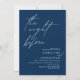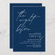 Announce your happily ever after moment in style with our modern navy blue wedding theme design (The Night Before) wedding rehearsal celebration invitation card. It is ideal for couples who have decided to celebrate the night before their best day. With its sophisticated yet playful design, this invitation is sure to set the tone for an unforgettable event. The invitation card features modern romantic script design, adding a touch of timeless elegance to your celebration. Designed by TeeshaDerrick