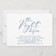Announce your happily ever after in style with our modern aesthetic navy blue theme design (The Night Before) wedding rehearsal celebration invitation card. It is ideal for couples who have decided to celebrate the night before their big day. With its sophisticated yet playful design, this invitation is sure to set the tone for an unforgettable event. The invitation card features modern romantic script design, adding a touch of timeless elegance to your celebration. Designed by TeeshaDerrick