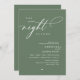 Announce your happily ever after in style with our modern romantic rustic forest sage green theme design (The Night Before) wedding rehearsal celebration invitation card. It is ideal for couples who have decided to celebrate the night before their big day. With its sophisticated yet playful design, this invitation is sure to set the tone for an unforgettable event. The invitation card features modern romantic script design, adding a touch of timeless elegance to your celebration. Designed by TeeshaDerrick