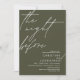 Announce your happily ever after in style with our modern olive green theme design (The Night Before) wedding rehearsal celebration invitation card. It is ideal for couples who have decided to celebrate the night before their big day. With its sophisticated yet playful design, this invitation is sure to set the tone for an unforgettable event. The invitation card features modern romantic script design, adding a touch of timeless elegance to your celebration. Designed by TeeshaDerrick