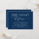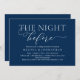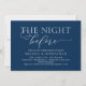 Announce your happily ever after in style with our modern Navy Blue theme design (The Night Before) wedding rehearsal celebration invitation card. It is ideal for couples who have decided to celebrate the night before their big day. With its sophisticated yet playful design, this invitation is sure to set the tone for an unforgettable event. The invitation card features modern romantic script design, adding a touch of timeless elegance to your celebration. Designed by TeeshaDerrick