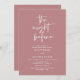 Announce your happily ever after in style with our modern dusty rose pink theme design (The Night Before) wedding rehearsal celebration invitation card. It is ideal for couples who have decided to celebrate the night before their big day. With its sophisticated yet playful design, this invitation is sure to set the tone for an unforgettable event. The invitation card features modern romantic script design, adding a touch of timeless elegance to your celebration.