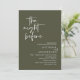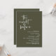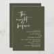 Announce your happily ever after in style with our modern olive green theme design (The Night Before) wedding rehearsal celebration invitation card. It is ideal for couples who have decided to celebrate the night before their big day. With its sophisticated yet playful design, this invitation is sure to set the tone for an unforgettable event. The invitation card features modern romantic script design, adding a touch of timeless elegance to your celebration.