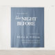 night before wedding backdrop, dusty blue rehearsal dinner, elegant pre-wedding backdrop, blue welcome party display, custom event welcome, dusty blue wedding backdrop, modern pre-wedding photo booth, blue rehearsal sign, wedding weekend backdrop, "the night before" wedding sign